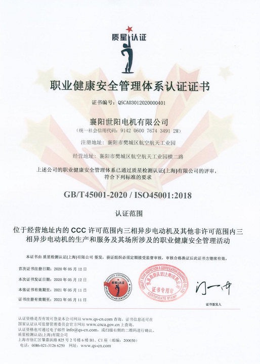 職業(yè)健康安全管理體系認證證書